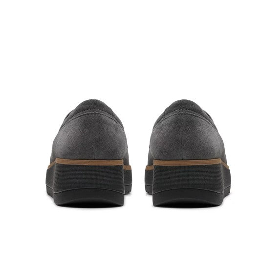 Clarks Women's Size 9 W, Zylah Sky Wedge Platform Loafer Shoes, Grey Suede