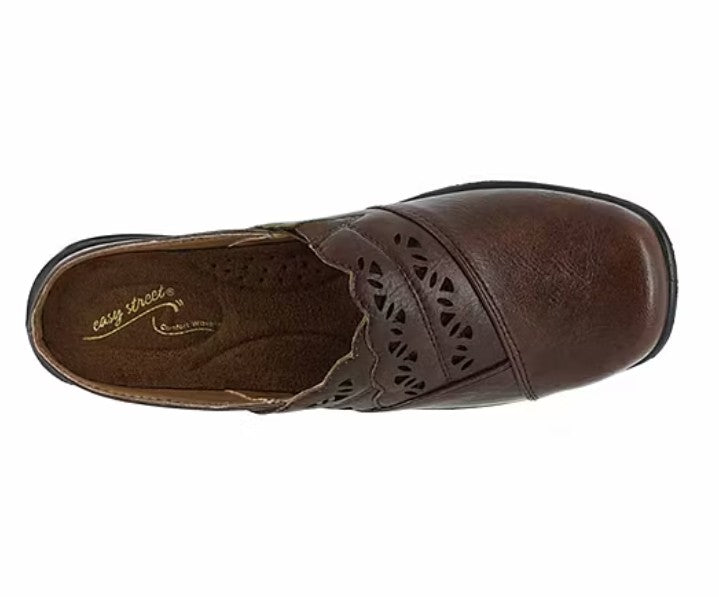 An eye-catching pattern adorns the effortless slip-on style of Easy Street's Forever mules in cutouts paired with comfort features for all-day style.