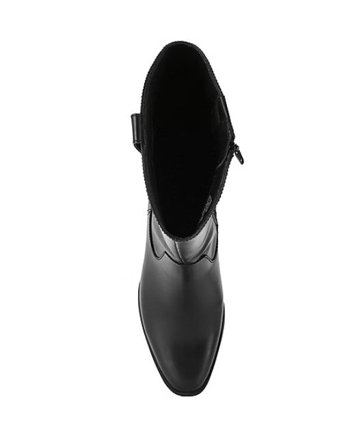 Channel your inner cowgirl with Frye & Co. women's faux leather Sheldon cowboy boots. Fitted to a knee-length, they have a cushioned insole for added comfort, a pointed toe, a stacked heel, a side zip for easy on-and-off. Perfect for any western-inspired look.