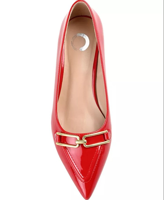 Journee Collection Rumi Women's Size 8, Pointed Toe Kitten Heel Pumps, Red