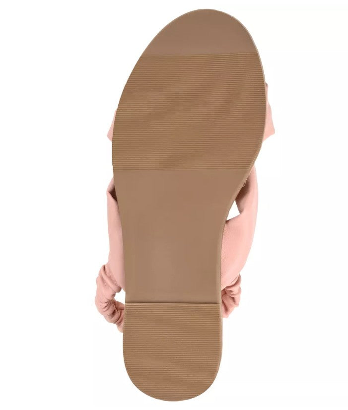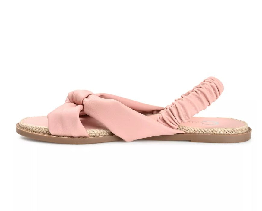 A sweet look for summer, the Kiandra by Journee. Knotted vegan leather straps top this effortless sandal for an elevated finish. A padded insole offers the perfect amount of support, and an espadrille braid adds texture to the look. At Journee, our sandal styles are going to be perfect for any occasion. Whether that be a formal, business, or casual dress, these sandals will be a perfect match.