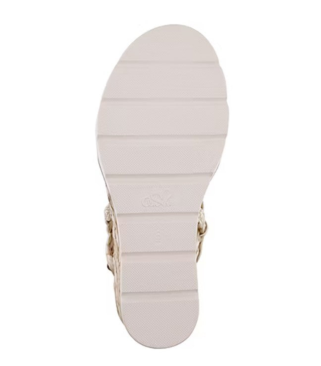Need to make a statement? The Tyrah is the perfect heel that can go from day to night in seconds. Crafted with a gold embellishment, an open toe and an adjustable buckle clasp. Finished on a raffia wedged heel and our signature contoured footbed for all-day wear.