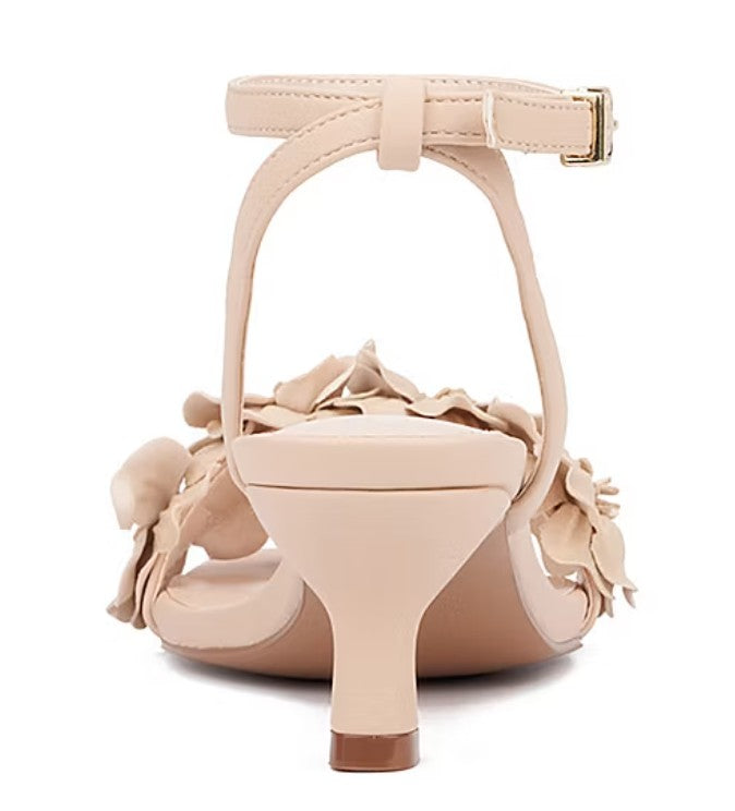 New York & Company Women's Size 7, Gwendolyn Kitten Heeled Sandals, Nude Floral