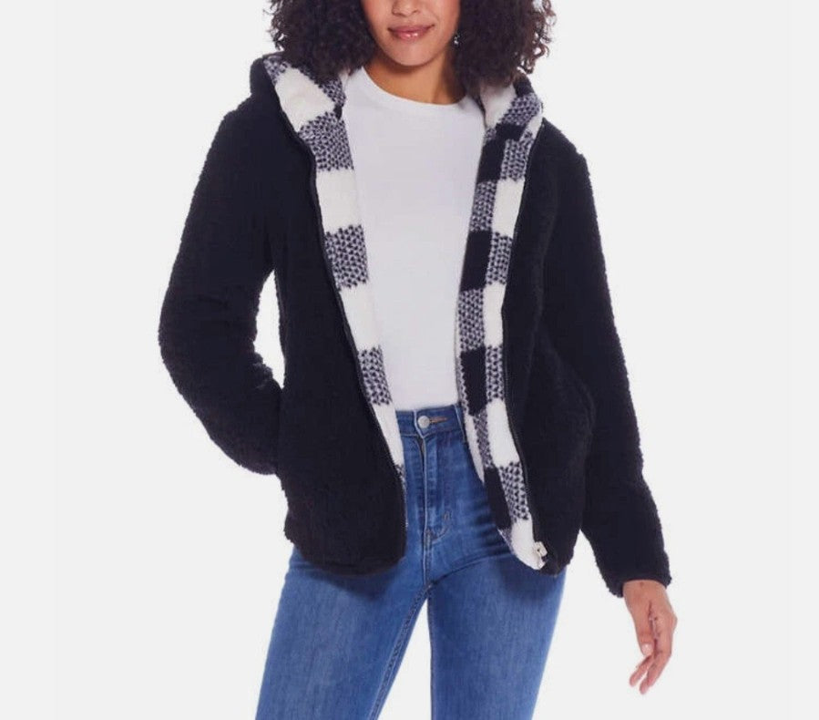 Weatherproof Women Size XS (0-2), Reversible Plush Hooded Jacket, Black/White