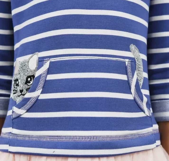 Zunie Girls' Size 4, 3/4 Sleeve Dropwaist Tutu Dress, Blue Kitty Cat